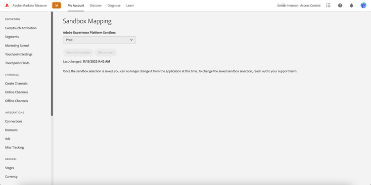 Após salvar a seleção de mapeamento da sandbox, não é possível alterá-la no aplicativo. Para alterá-lo, contate o Suporte da Marketo.