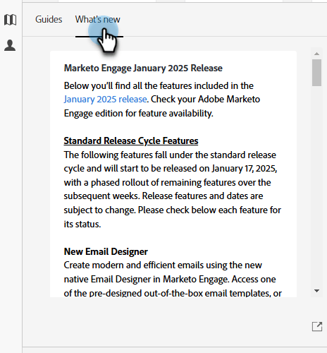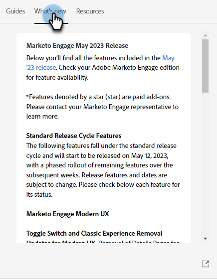 A guia Novidades contém os detalhes da versão mais recente do Marketo Engage.