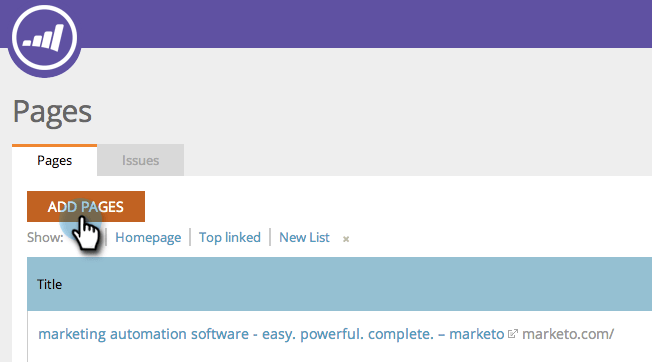 O SEO da Marketo rastreará automaticamente seu site e os rastreará. Caso perdemos alguns, coloque-os no aplicativo SEO assim.