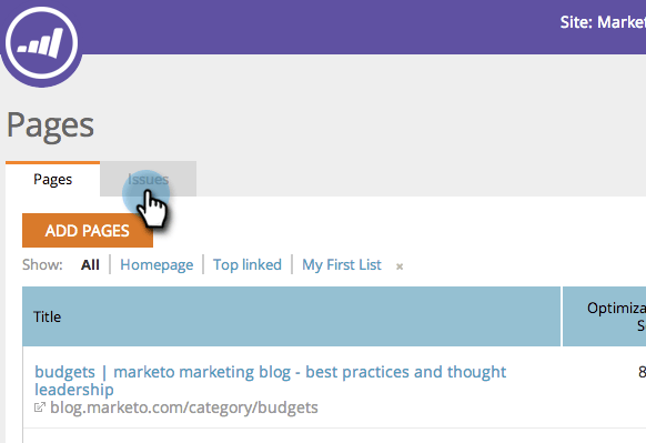 Na seção Páginas, clique em Problemas.