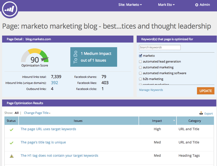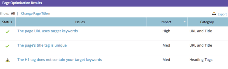 Os Resultados da Otimização de Página informam as etapas exatas que você precisa seguir para aumentar sua pontuação de otimização/ter melhor desempenho na pesquisa desta página.