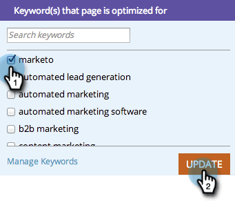 Aqui é onde você seleciona qual palavra-chave está tentando otimizar sua página para.