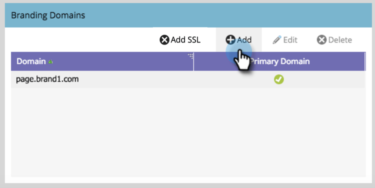 Clique em Adicionar para adicionar outro domínio de marca.
