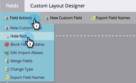 Clique no menu suspenso Ações do Campo e selecione Ocultar Campo.