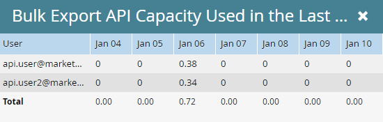 Saiba como verificar quanto a capacidade da API de extração em massa foi ocupada pela sua instância do Marketo Engage nos últimos sete dias.