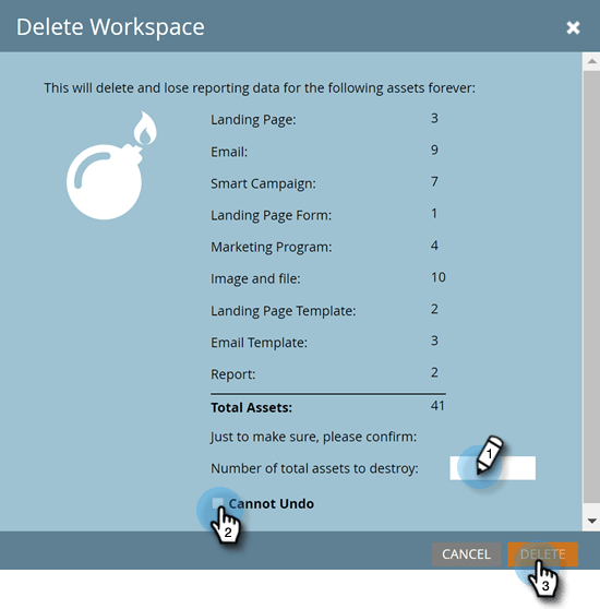 Confirme o número de ativos que você está prestes a excluir (ele está listado para você ao lado de "total de ativos"), marque a caixa de seleção Não é possível desfazer e clique em Excluir.