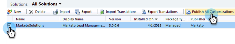 Selecione Marketo Lead Management e clique em Publicar todas as personalizações.