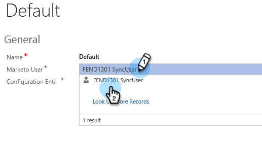 Clique no campo Usuário do Marketo e selecione o usuário de sincronização.