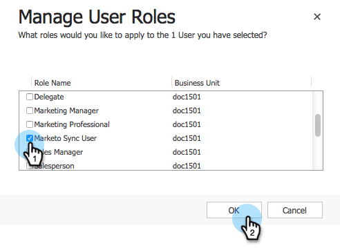 Marque Usuário da Sincronização do Marketo e clique em OK.