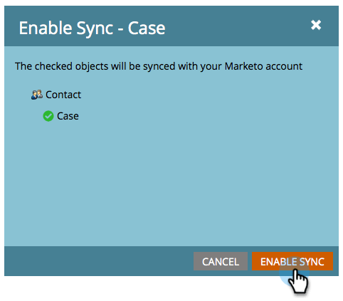 Selecione o objeto que deseja sincronizar e clique em Habilitar Sincronização.