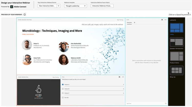 Etapa quatro: Crie seu Webinário Interativo — Depois que o webinário for criado e uma equipe opcional for adicionada, é hora de adaptar o evento às suas necessidades específicas.