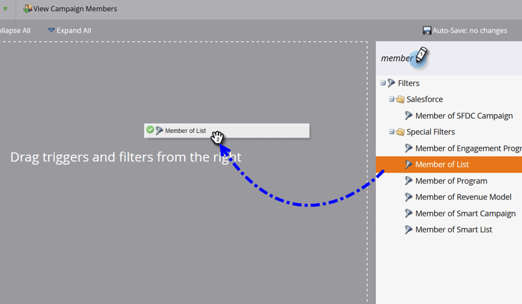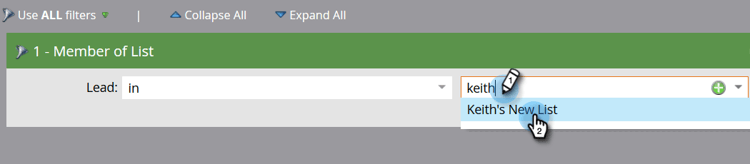 Na Smart List da Campanha Inteligente criada na Etapa Dois, localize e adicione o filtro Membro da Lista.