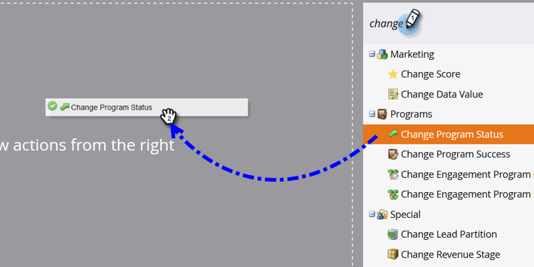 No Fluxo, localize e adicione a etapa de fluxo Alterar status do programa.