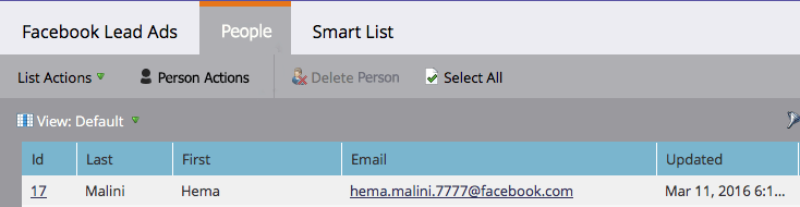 É aqui que a magia acontece! Depois de enviar o formulário, crie uma lista inteligente no Marketo como parte de um programa ou no banco de dados que usa o filtro de Formulário de Facebook anúncios de cliente potencial preenchidos. Insira o Nome do formulário do anúncio de cliente potencial do formulário que acabou de enviar.