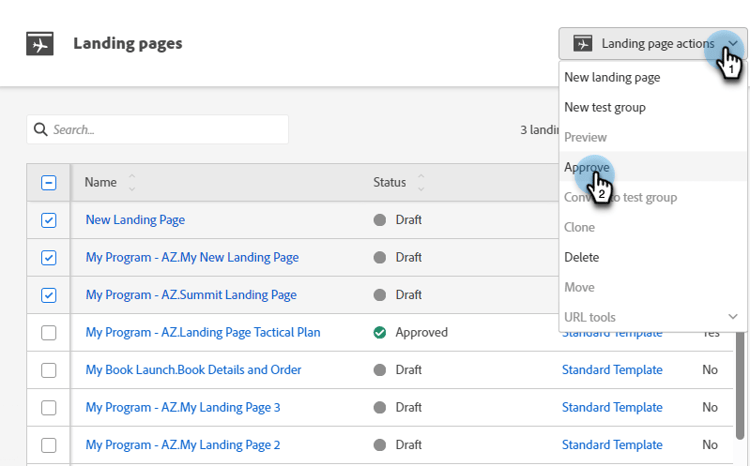 Aprovar várias páginas de destino de uma vez approve-multiple-landing-pages-at-once