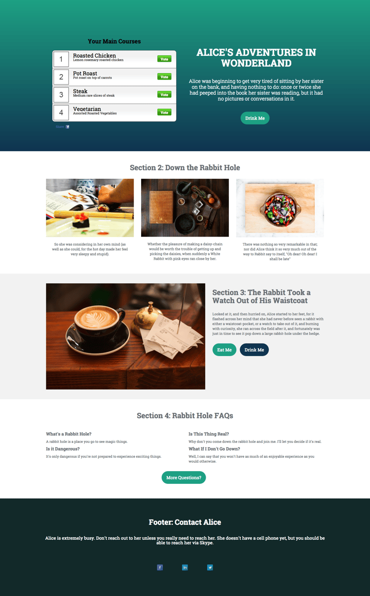 - inclui uma enquete, cabeçalho, corpo de texto e botão.