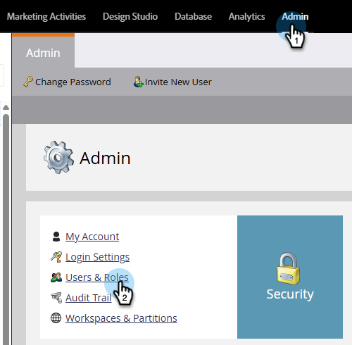 No Marketo Engage, clique em Administrador e selecione Usuários e funções.
