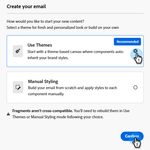 Selecione Usar Temas (deve ser selecionado por padrão) e clique em Confirmar.