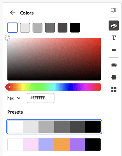 É possível escolher entre predefinições ou configurar individualmente cada cor no conjunto. Posteriormente, a escolha da paleta torna essas cores acessíveis nas diferentes configurações de cor.
