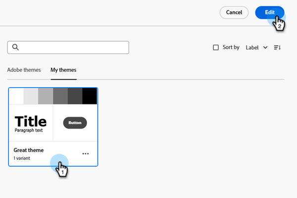 Selecione o tema desejado. O botão Criar torna-se um botão Editar. Clique em Editar.