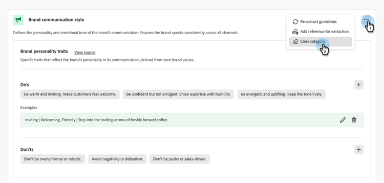 Para criar e gerenciar a diretriz da marca, você pode inserir os detalhes por conta própria ou fazer upload do documento de diretrizes da marca para que as informações sejam extraídas automaticamente.