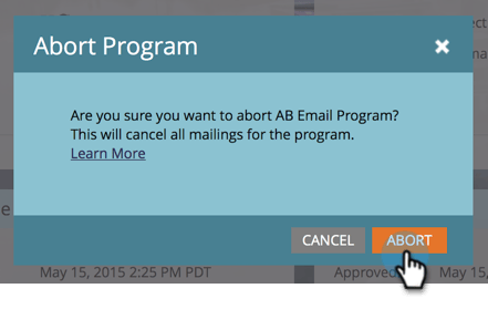 note caution CAUTION Depois que o programa de email for abortado, ele não poderá ser reagendado.