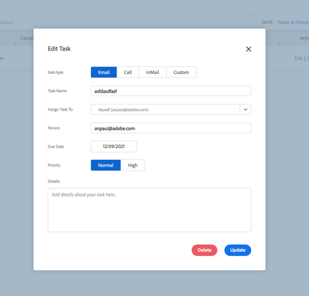 Quando as configurações de sincronização de tarefa estiverem habilitadas, os usuários verão suas tarefas de lembrete sincronizadas bidirecionalmente com o Salesforce. Isso significa que os usuários podem gerenciar tarefas a partir do Salesforce ou do Sales Connect e ter certeza de que os sistemas permanecerão alinhados.