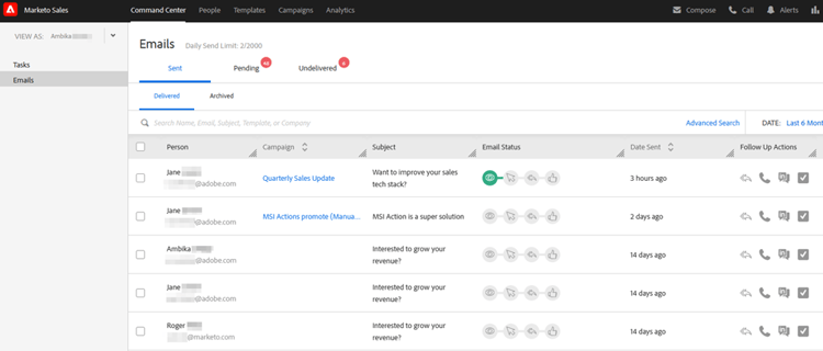 Administradores podem ver todas as pessoas em uma campanha em andamento.