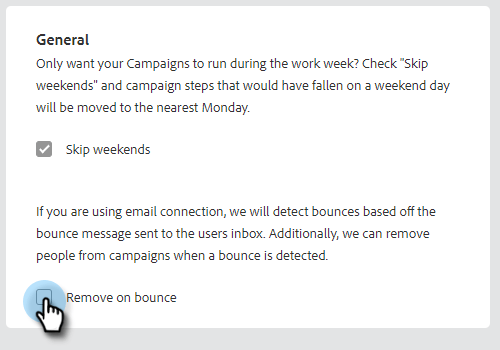Se você estiver usando conexão de email, detectaremos rejeições com base na mensagem de rejeição enviada para a caixa de entrada dos usuários. Além disso, podemos remover pessoas de Campanhas de vendas quando uma rejeição for detectada.
