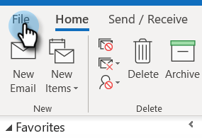 No Outlook, clique em Arquivo na barra de menus.