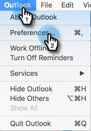 Em Outlook, clique em Outlook na barra de menus e selecione Preferências.