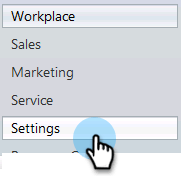 Entrar no Microsoft Dynamics CRM. Clique em Configurações no menu inferior esquerdo.
