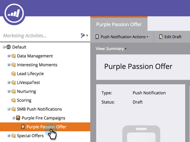 - Acesse a área Atividades de marketing.