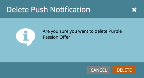 note note NOTE Se a Notificação por push de dispositivos móveis estiver sendo usada por outros ativos, você não poderá excluí-la. Você precisa removê-lo dos ativos.