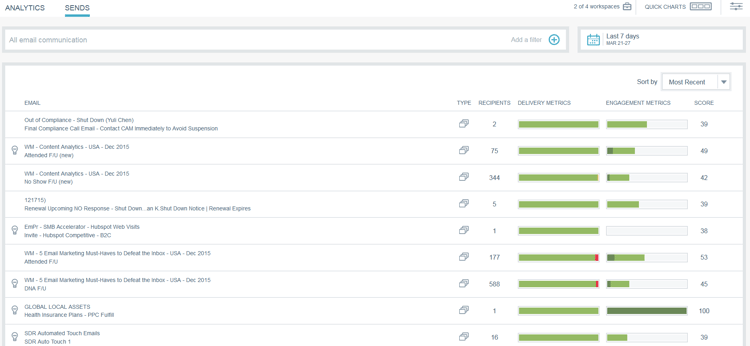 O Email Insights fornece insights avançados de dados históricos para profissionais de marketing por email. Consiste em duas seções separadas, mas associadas: Analytics e Sends.