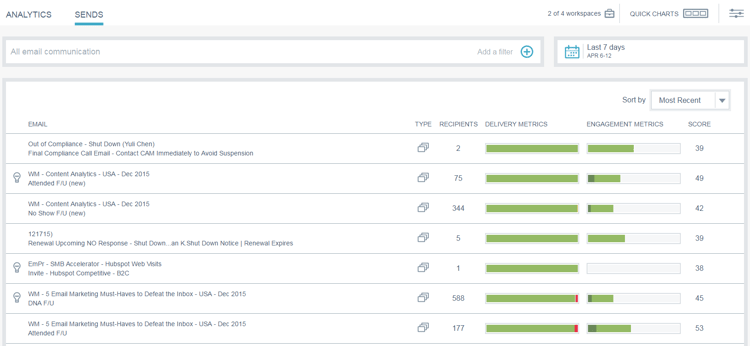 Se quiser exibir as estatísticas de seu email no Analytics, passe o mouse ao lado de Pontuação e clique no ícone do gráfico.