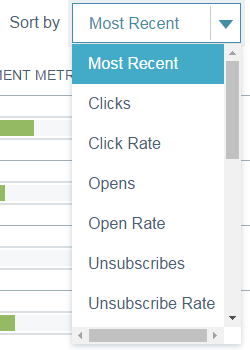 Métricas de engajamento oferece uma visão rápida de quantos destinatários abriram, clicaram e cancelaram a assinatura de um email.