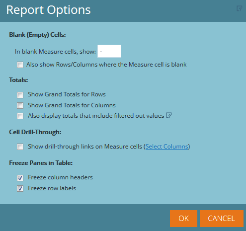 Em cada relatório, há várias opções disponíveis para ajudar você a personalizar a experiência.