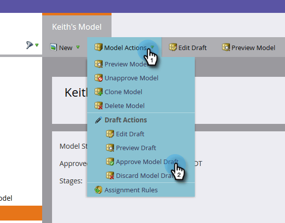 Quando você terminar de fazer alterações no modelo, reaprove-o selecionando Aprovar rascunho do modelo no menu Ações do modelo.