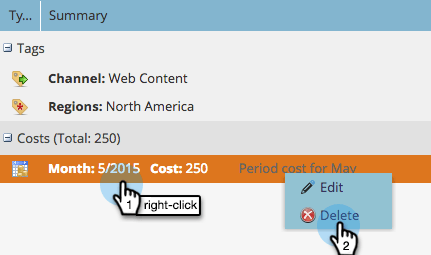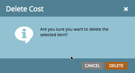 Clique com o botão direito no Custo do Período que deseja excluir e selecione Excluir no menu pop-up para exibir o prompt Excluir Custo.