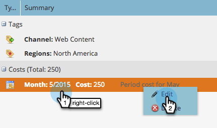 Clique com o botão direito do mouse em Custo do Período e selecione Editar no menu pop-up para abrir a caixa de diálogo Editar Custo.