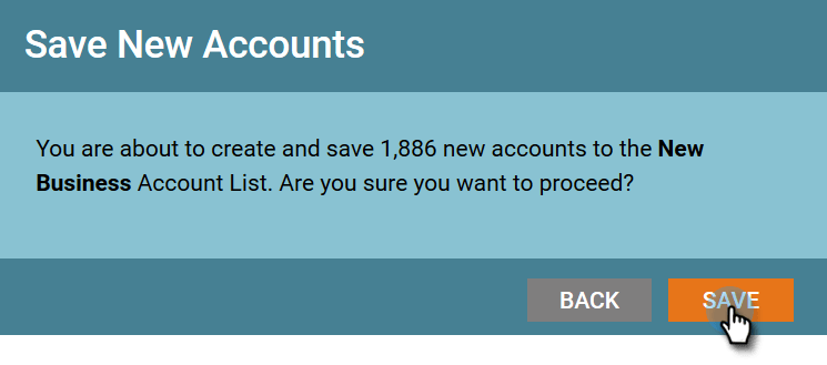 note note NOTE Você só pode salvar até 5.000 contas de cada vez. Se a sua pesquisa produzir 10.000 resultados, você terá que salvar os primeiros 5.000, redefinir os filtros e salvar os próximos 5.000. O limite de contas de total é de um milhão. -