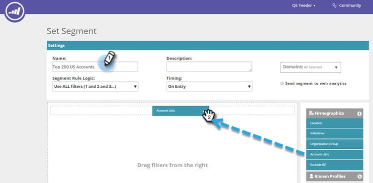 Insira um nome para o segmento. Arraste e solte Listas de Contas da seção Firmographics.