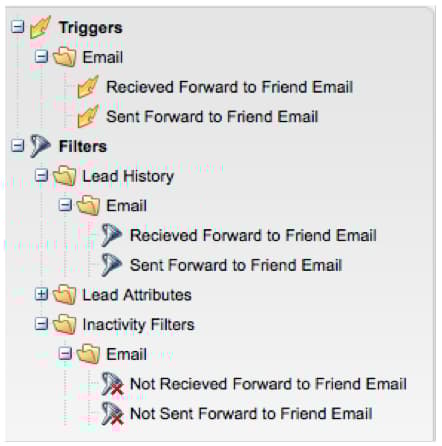 Use os disparadores e filtros correspondentes para identificar os usuários que usaram o link Encaminhar para um Amigo e aqueles que receberam o email.