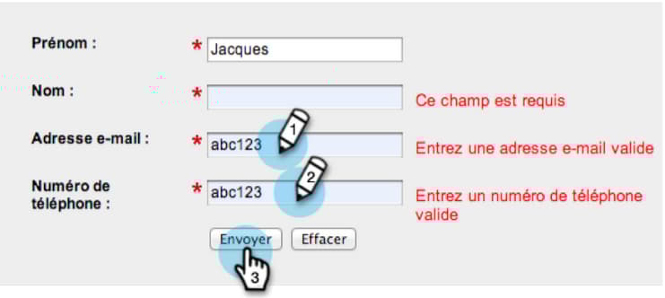 Um exemplo de um formulário em francês: