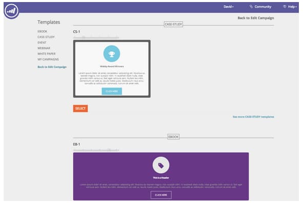 A página RTP Definir Campanha agora inclui modelos prontos. Escolha entre uma variedade de estilos, incluindo webinários, estudos de caso, e-books.