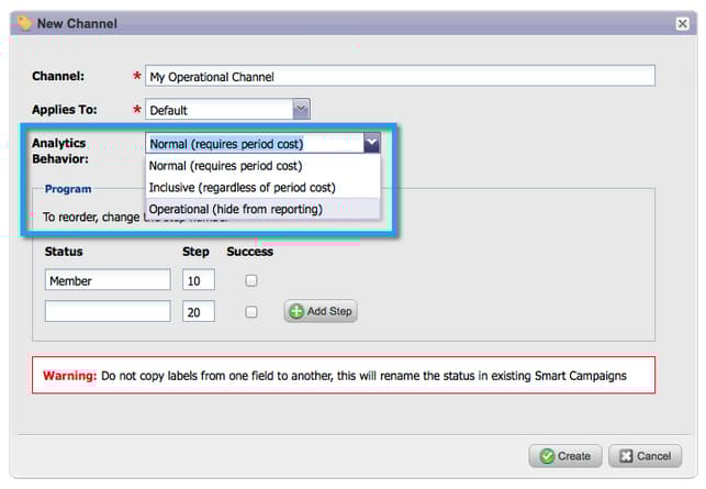 Agora você pode incluir programas sem custos de período no Gerenciador de Receita e nos Analisadores, definindo a opção Comportamento do Analytics como "Inclusivo" ao editar Canais de Programa. Você também pode excluir programas operacionais de gerar relatórios por completo, escolhendo "Operacional".