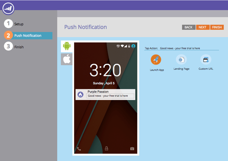 Com o Marketo Mobile Engagement, oferecer experiências móveis atraentes é fácil. Crie campanhas altamente personalizadas que fornecem conteúdo atraente sem precisar depender de uma equipe de desenvolvimento de aplicativos. Novos filtros e acionadores permitem que você escute e responda no canal móvel por meio de notificações por push.
