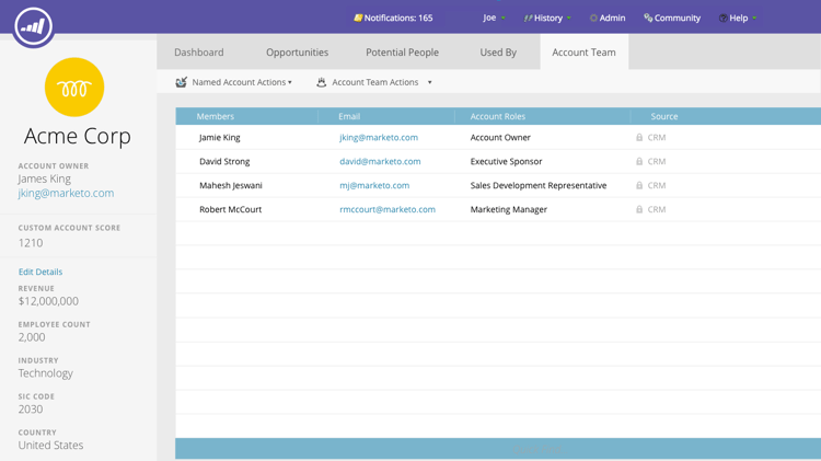 Agora, você pode atribuir equipes de conta a contas nomeadas no ABM (Account Based Marketing), por exemplo, proprietário de conta, representante de desenvolvimento de vendas, representante de desenvolvimento de negócios e gerente de sucesso de clientes. Você também pode criar listas de contas específicas do proprietário da conta e enviar relatórios personalizados semanais do ABM para a equipe da conta.