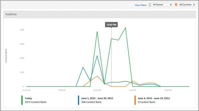 O painel Faixa de horário da mídia exibe os inícios do conteúdo por hora do dia para que você visualize rapidamente quando o público-alvo está envolvido.